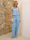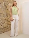 Conheça a coleçãoCalça confeccionada em tecido plano, com modelagem de alfaiataria que garante um shape estruturado e valoriza a silhueta com elegância. O design conta com cós transpassado, proporciona um ajuste confortável, além de bolsos laterais funcionais e um bolso com lapela aplicado de um lado só posterior, detalhe que adiciona modernidade e personalidade à peça, além de pence posterior e vinco. O fechamento é frontal, composto por zíper, fecho de social e botão interno de segurança, assegurando um acabamento sofisticado. Atemporal e versátil, é uma escolha essencial para transitar com elegância entre produções casuais e composições mais formais.